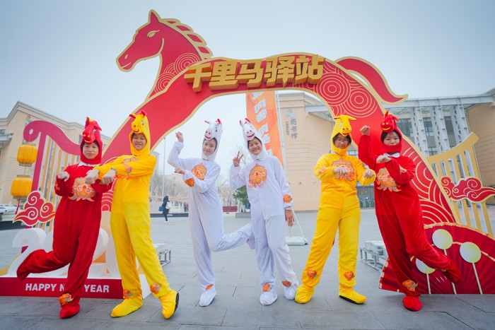 在济南市舜耕小学,校门口布设马年互动主题展板,搭配骏马祝福语背景,舜娃亲手书写新年愿望张贴其上,纸飞机“凌云马”、红包袋“福运马”、五彩扇“追风马”三款专属小马元素,让孩子们在趣味互动中迎接新学期。济南外国语学校的学生们踏入校门的瞬间,6只活泼可爱的“小骏马”便映入眼帘。学校啦啦操队的同学身着玩偶服,用热情的舞姿和灿烂的笑容迎接大家返校。校园内还精心布置了多处主题打卡点,以及锦鲤转盘、多重盲盒等趣味互动环节,等待同学们逐一解锁。