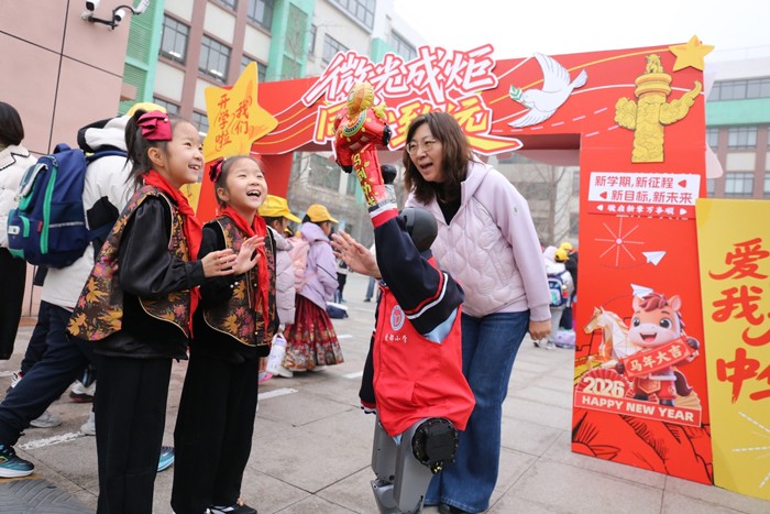 春燕归巢,书声回响。又是一年开学时。昨天是济南市幼儿园、中小学生春季新学期开学的日子。一大早,各学校紧扣健康第一、科技赋能、福马迎新等主题,精心布置校园、创新开学仪式,纷纷上演马年“开学大片”,与机器人握手交朋友、领到“福马”红包、分享假期经历……孩子们元气满满,开启新学期的“飞驰人生”。