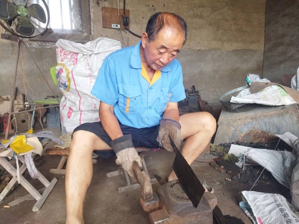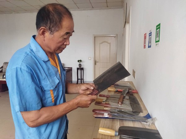 “以前做夹钢刀,钢用在刀刃部分,有两三厘米宽,用两片铁夹起来。早些时候钢是比较匮乏的。2000年左右,制刀工艺逐渐开始改良,现在新工艺做出来的菜刀整个都是钢的。之前用锰钢,易生锈,现在用铬钢,不生锈。”邵泽亮对记者说,除了小部分老师傅会做夹钢刀,“现在年轻一代,基本已经不会做了。”