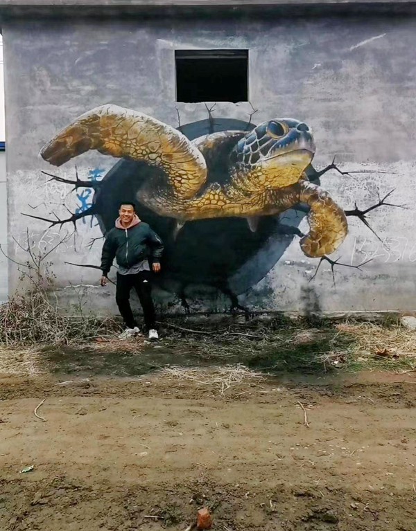原本平平无奇的乡村墙壁,在济宁一位“85后”青年画笔下,一幅幅具有裸眼3D视觉效果的墙绘,为朴实的村子带来一抹亮丽的色彩,俨然成了一场别开生面的展览。今年35岁的赵光远告诉山东商报·速豹新闻网记者,自己从事墙绘创作工作已10年。两年前,赵光远开始走进乡村,在墙壁上创作壁画。不少作品以短视频的方式发布在网络上后,不承想受到越来越多网友的点赞。他对记者说,“画遍全国,画正能量,画传统文化”,正是自己坚持已久的理想。