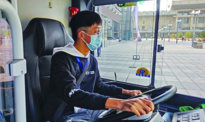舒畅作为“公交迷”参加公交车试驾活动(非线路运行下拍摄)