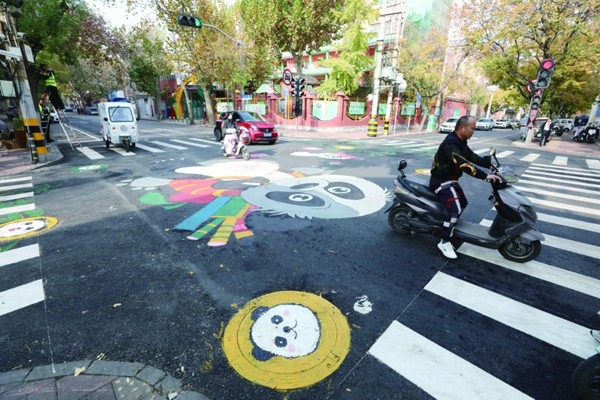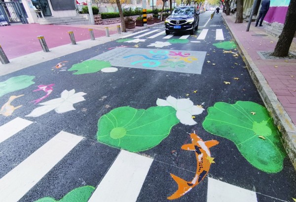 昨日,在省城经五纬三路至经六纬三路口,三组大型彩绘亮相道路中央的地面上。山东商报·速豹新闻网记者在现场看到,彩绘分别以“中国龙”“十二生肖”“熊猫”“锦鲤碧荷”为主要图案。既展现了中华传统文化,又体现了浓郁的泉城特色。据悉,这些彩绘均由附近学校的师生共同创作完成。路过的市民纷纷称赞不已:有了这些憨态可掬、惟妙惟肖的彩绘加持,这条路成了省城最萌最靓的大道。