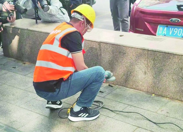 昨天上午,记者在槐荫区经十路一处整治点看到,现场工作人员正对一个凸出路面的膨胀螺栓进行清理。切割机与金属碰撞溅起火花,随后是打磨、回填、平整、修复——五道工序环环相扣。“绝不能留残根、留锐点,否则就是制造新的隐患。”历下区市政工程服务中心副主任高静告诉记者。