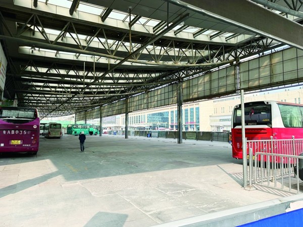 现场工作人员告诉记者,目前大多数客运班线已迁移至北广场的新站,南广场仅剩往高唐、禹城、聊城以及遥墙机场等方向的少数班线营运。此外,位于车辆进场入口的保安亭也已停止使用。