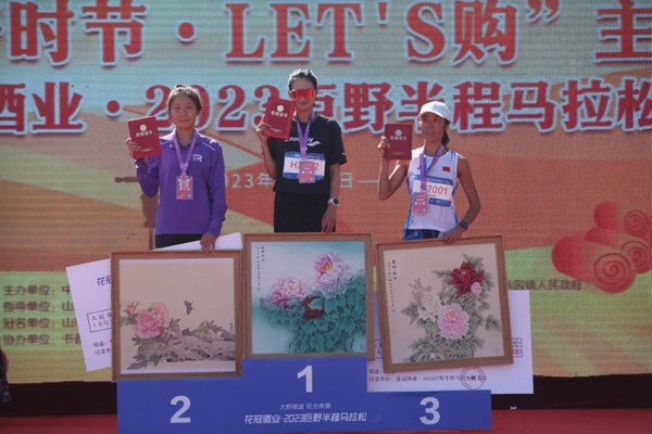 巨野县委常委、副县长张文婷为女子前三名运动员颁发证书、奖牌;巨野县文化和旅游局党组书记、局长朱衍芳为她们颁发工笔牡丹画;核桃园镇党委副书记、镇长宋永强为她们颁发奖金。