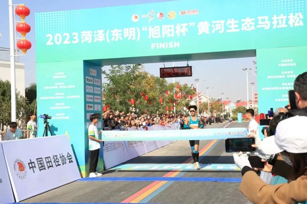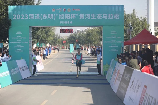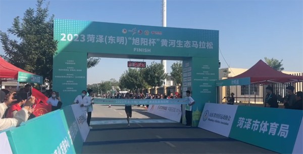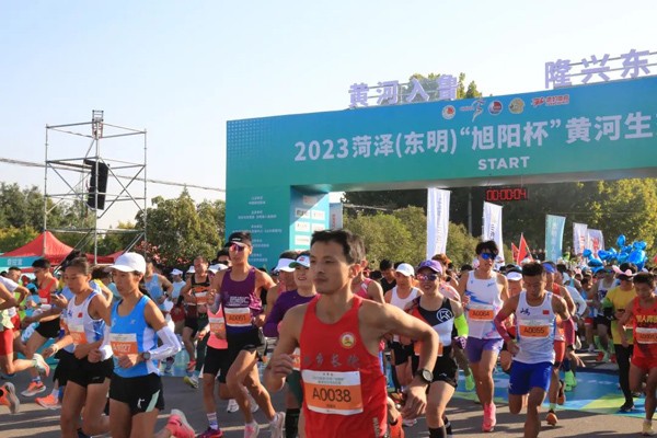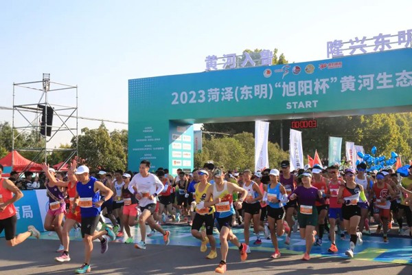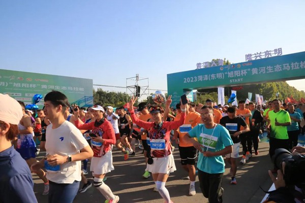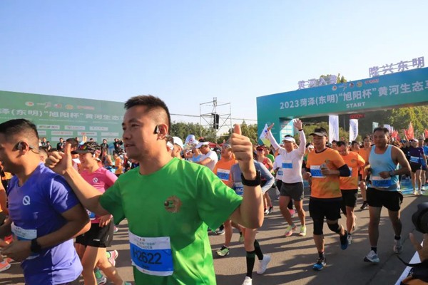 10月15日上午8点30分, 2023菏泽(东明)“旭阳杯”黄河生态马拉松赛在东明黄河国家湿地公园鸣枪开跑。