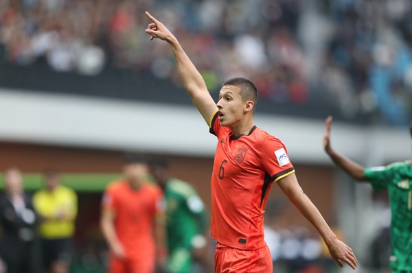 U20亚洲杯四分之一决赛,中国球员依木兰·买买提在比赛中 新华社发