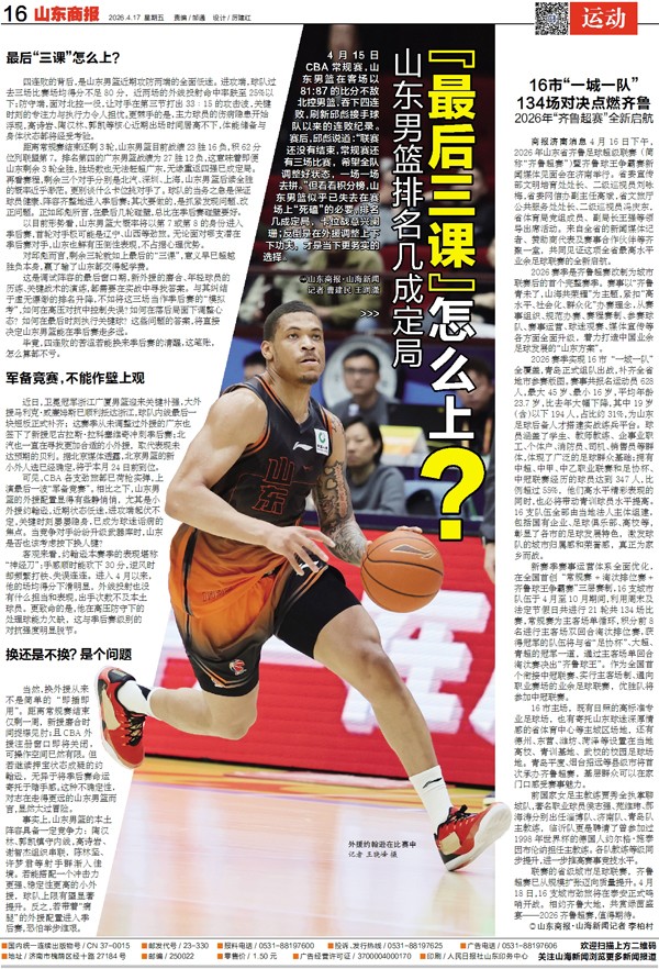 事实上,山东男篮的本土阵容具备一定竞争力:陶汉林、郭凯镇守内线,高诗岩、谢智杰组织串联,陈林坚、许梦君等射手群渐入佳境。若能搭配一个冲击力更强、稳定性更高的小外援,球队上限有望显著提升。反之,若带着“瘸腿”的外援配置进入季后赛,恐怕举步维艰。