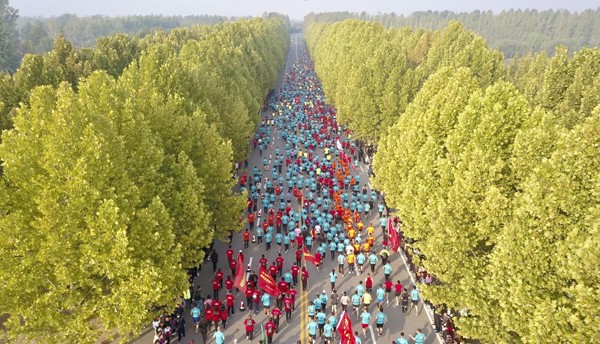 在这里,东明黄河生态马拉松已连续举办三届,通过航拍画面,黄河大堤的美震撼人心,被称为最美的马拉松赛道。