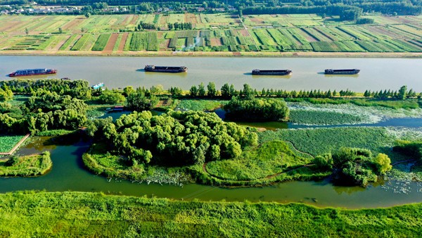 这是在枣庄市台儿庄区拍摄的大运河国家文化公园(枣庄段)两岸景色 新华社发
